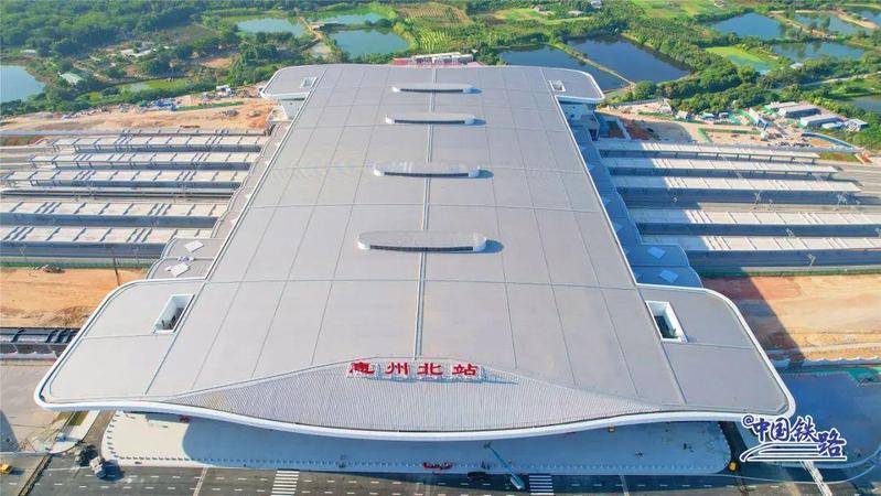惠州北站位于惠城区小金口街道白石村,站房面积约5万平方米,是赣深高铁全线8座新建车站中面积最大的一个,站场规模为7台16线,其中赣深场5台12线,莞惠城际场2台4线。惠州北站站房两侧为船型造型,犹如一只展翅的大鹏,振翅欲飞。