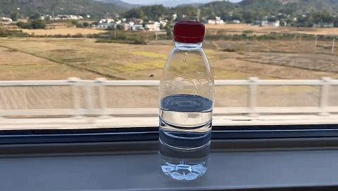 放在窗台上的水瓶稳稳站着