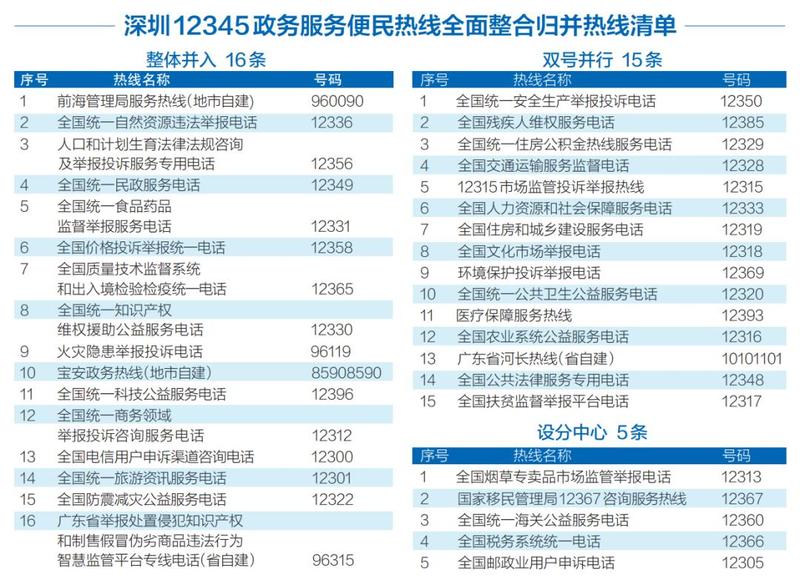 记者从深圳市政务服务数据管理局了解到,为贯彻落实国务院办公厅、广东省政府办公厅关于进一步优化政务服务便民热线的工作要求,深圳市政务服务数据管理局开启了深圳12345政务服务便民热线的全面整合归并工作。