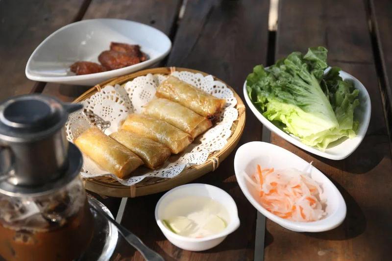 在三棵古树的环绕之下,一杯滴漏咖啡,一份越南春卷,沁心裹腹,值得一品。