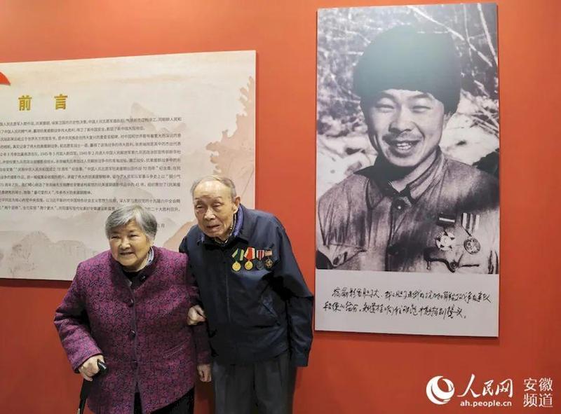 “我老了,但是照片不会老,抗美援朝精神不会老!”在“抗美援朝纪实”展览上,92岁的抗美援朝老兵张崇岫颤颤巍巍走到自己年轻时在战场的照片前面,与年轻时的自己合个影。