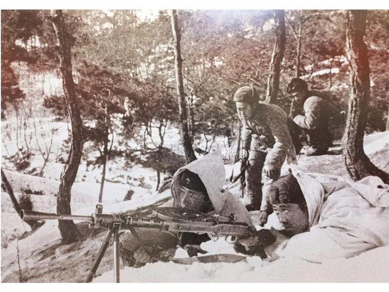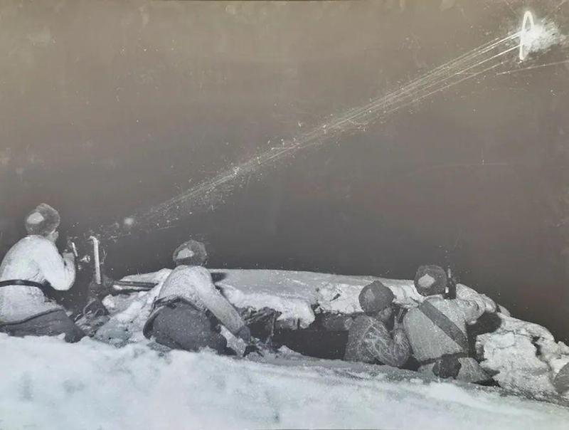 当时,是在严寒的长津湖夜战中,第二十七军一个连队机枪手正在向美军阵地射击。“晚上只能拍到近景,远景就拍不到了,我用镁粉灯打了光,拍下战壕里的士兵,没想到,后来洗片子的时候,才发现,当时把远处美军帐篷被击中燃烧起来的场景也拍到了。”张崇岫回忆起那张照片的由来,仍感惊喜。