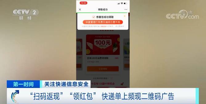 快递单上频现“扫码返现”“领红包”广告