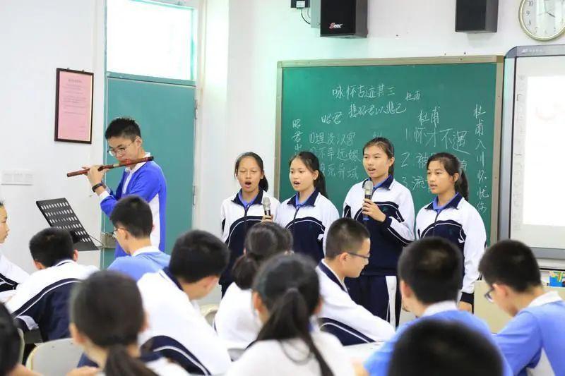最后她让学生上台吹笛吟唱,感受诗的音乐美。