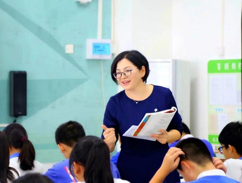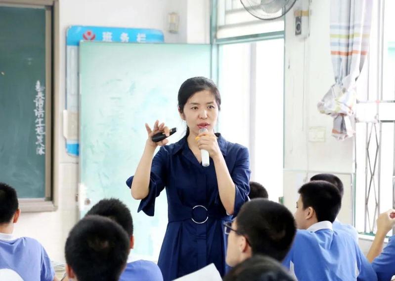 全国优秀教师、布心中学教科室主任黄海青的课充满了语言美、形式美,她的课堂经常采用“小老师”讲课、学生上台分享、点评作业、小组合作研讨等多种方式,突出了“以学生为主体,老师为主导”的教学理念。
