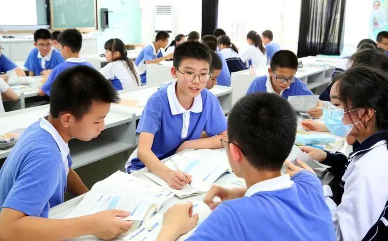 ▲布心中学的课堂上学生展开小组合作学习