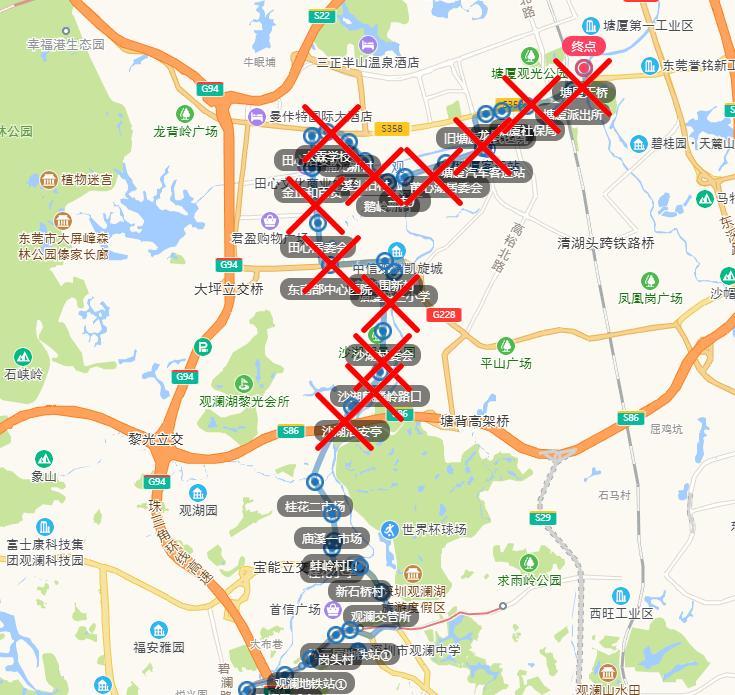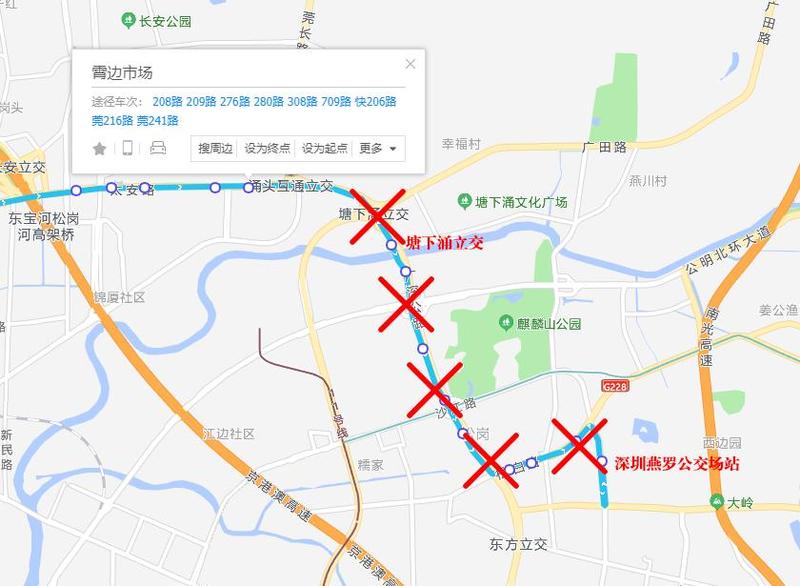 临时取消“深圳燕罗公交总站”至“塘下涌立交”之间的所有公交停靠站。