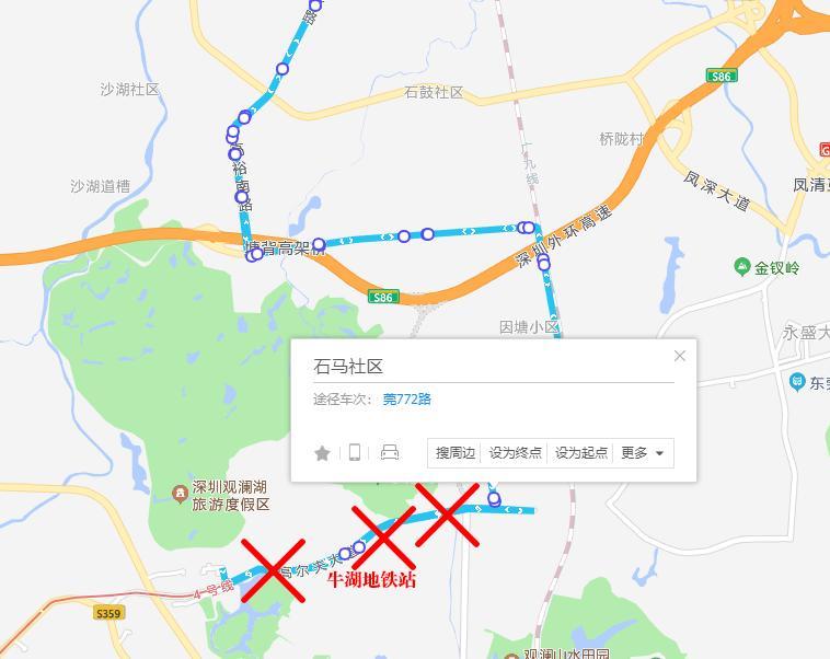 临时取消“塘厦天桥”至“沙湖治安亭”之间的所有公交停靠站。