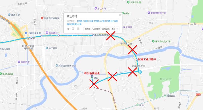 一端总站由碧头地铁站北临时调整为霄边市场。