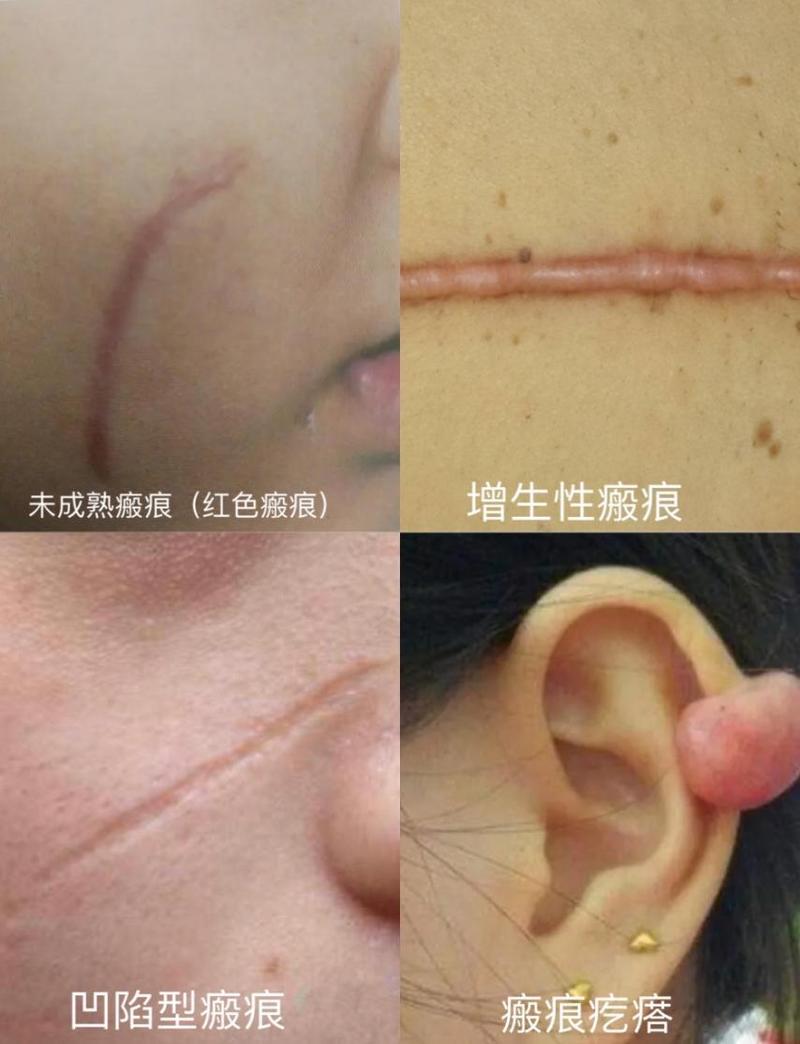 瘢痕分为红色瘢痕、增生性瘢痕、凹陷型瘢痕与瘢痕疙瘩。不仅影响美观,而且还妨碍相关组织器官的生理功能,会引起疼痛、瘙痒甚至继发畸形或恶变的存在。