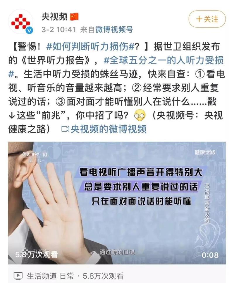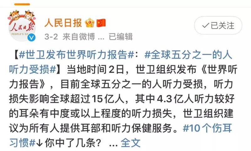 世界卫生组织今年发布的《世界听力报告》中说,全球有五分之一的人听力受损。