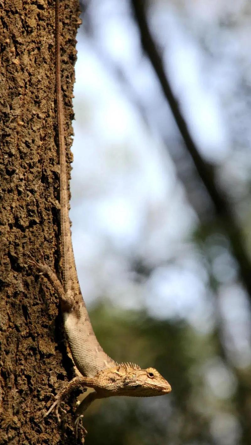 这时节,梅林水库的岸边,冷血动物变色树蜥用晒太阳获得生命的能量。