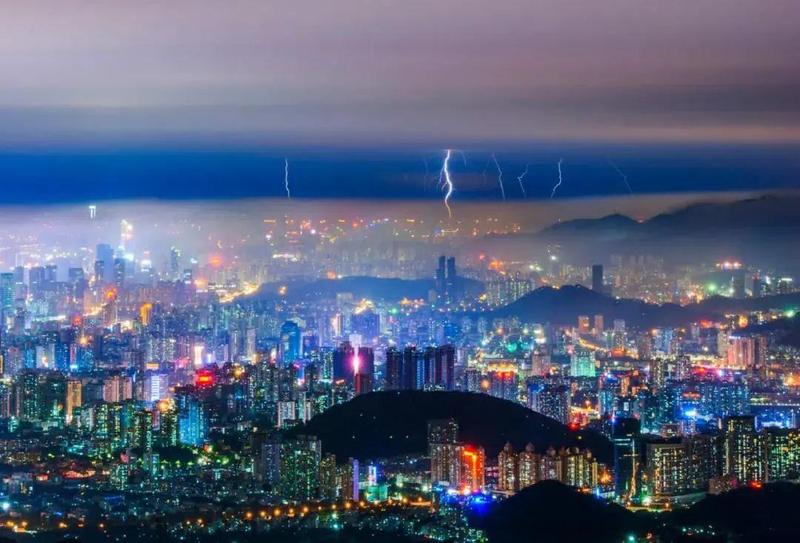 雷电笼罩下的深圳。夏季是深圳气候最多变的季节,酷暑、雷电、暴雨、龙舟水、台风接踵而至。杨晖/摄