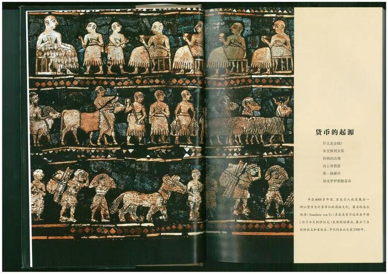 早在4000多年前,苏美尔人就发展出一种以货币为计算单位的高级文化。著名的乌尔标准( Standarte von Ur)是在美索不达米亚平原(位于今天的伊拉克)发现的陪葬品,展示了当时的农业和畜牧业,年代约在公元前2500年。