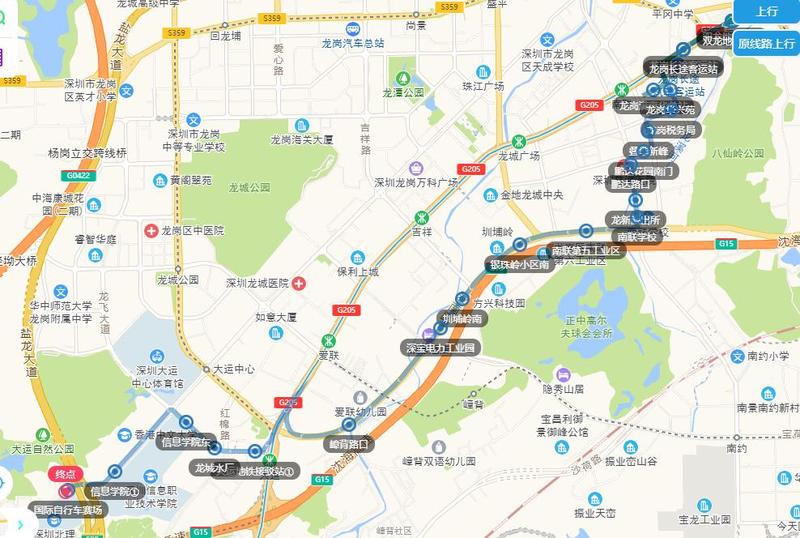 双方向增加“龙岗华兴苑、龙岗税务局、叠翠新峰、鹏达花园南门、鹏达路口、龙新派出所、南联学校、南联第五工业区、银珠岭小区南、圳埔岭南、深宝电力工业园、嶂背路口、大运地铁接驳站①、龙城水厂、信息学院东、信息学院①、国际自行车赛场”等17对公交停靠站。