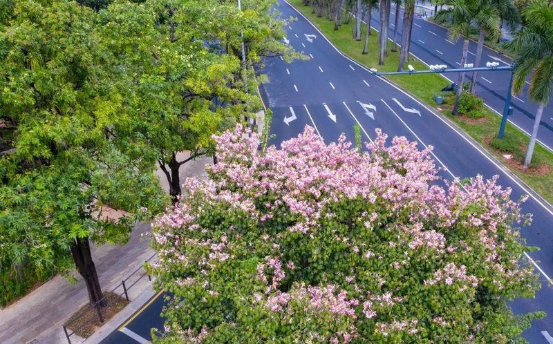 ▲冬日里的绽放,莲花山公园大门口的美丽异木棉是市民最熟悉的明星树。南兆旭/摄