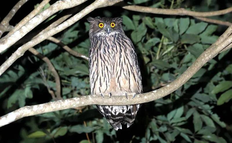 ▲梧桐山的密林里,夜色中出来觅食的猫头鹰——褐渔鸮(xiāo)。刘美娇/摄