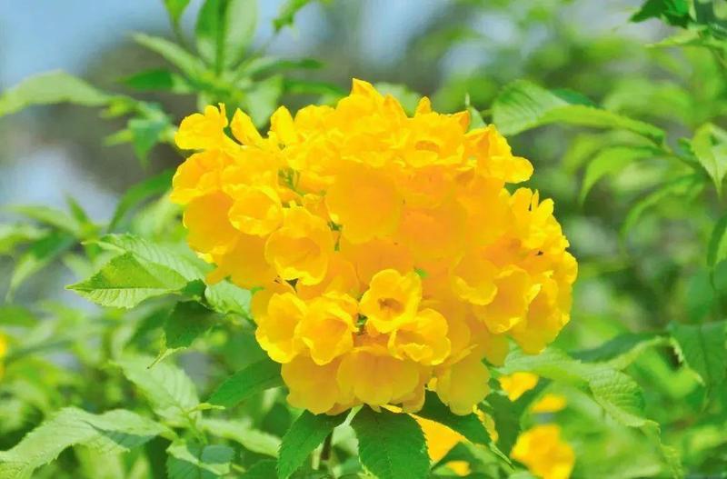 花鲜黄色,排成顶生的总状花序或圆锥花序,花冠漏斗状,果长条形。喜光,喜温暖湿润气候,不耐严寒和干旱。繁殖常用扦插法和播种法,均可在春秋两季进行。