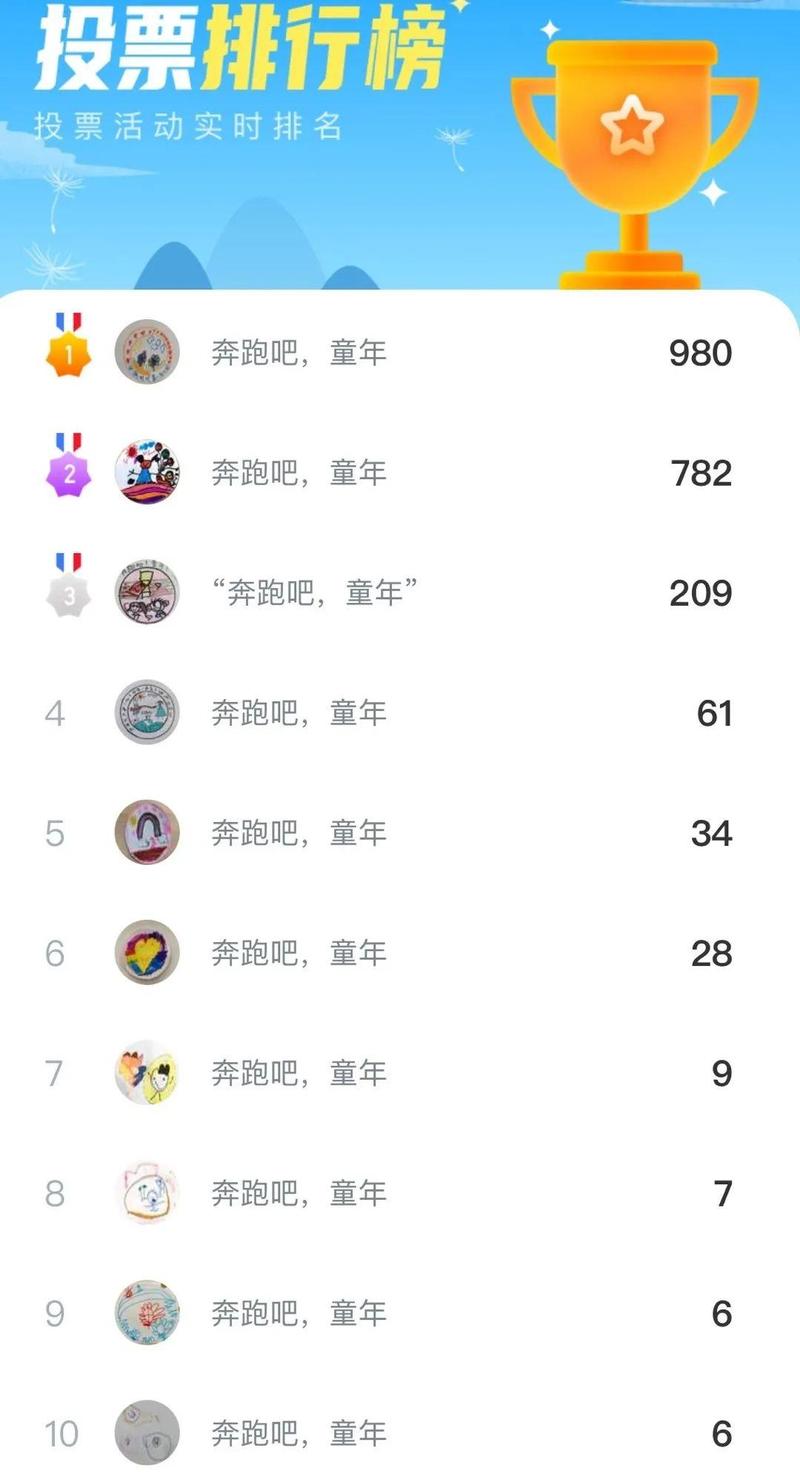 小朋友们为运动会设计了专属的会徽,由各班票选出一名参与投稿,最终通过网络票选产生。