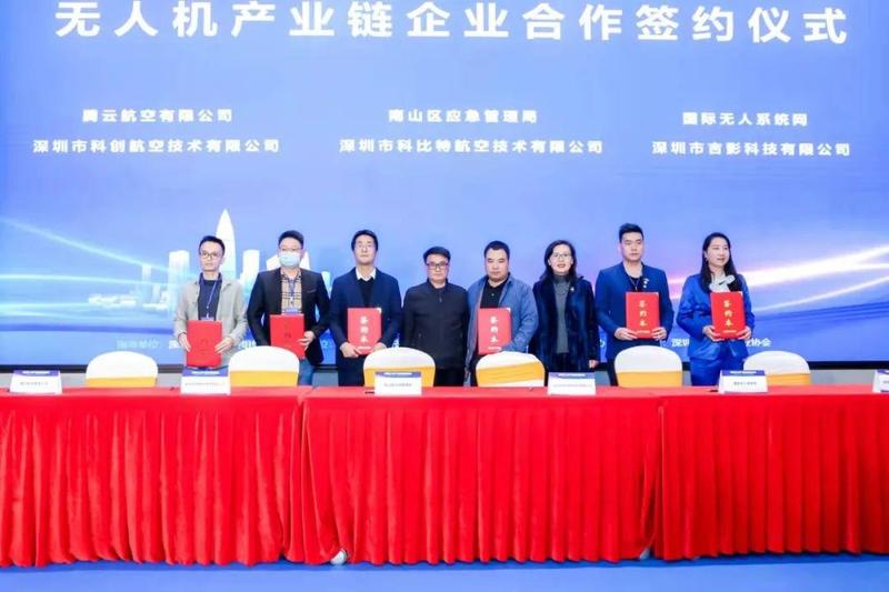 签约仪式上,深圳市科创航空技术有限公司与腾云航空有限公司、深圳市吉影科技有限公司与国际无人系统网等企业现场达成了合作意向并进行了合作签约。
