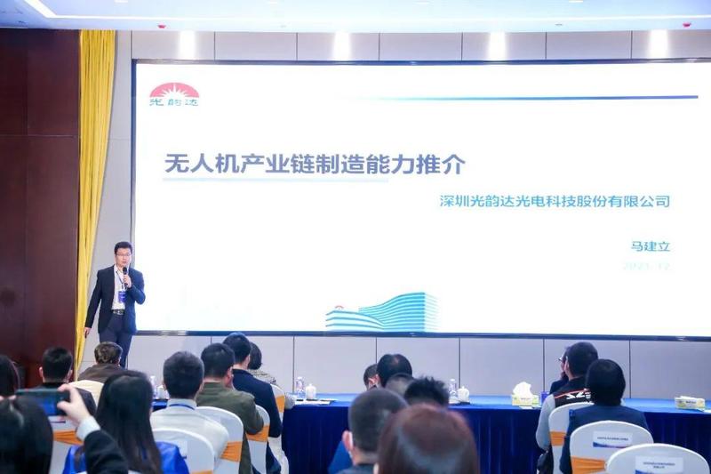 光韵达光电科技带来了题为“无人机产业链制造能力推介”的演说,企业负责人介绍了公司应用服务和智能装备两个方面的主营业务。
