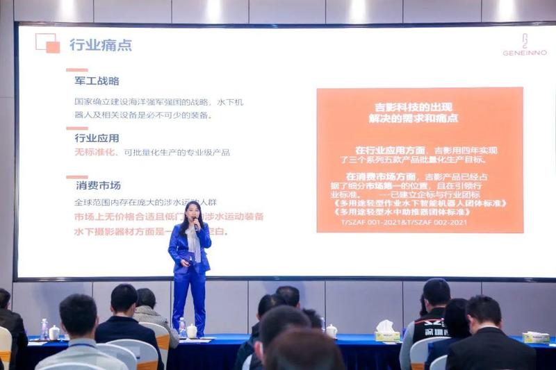 企业路演环节中,深圳市道通智能航空技术股份有限公司市场总监刘国正、深圳市科比特航空技术有限公司董事长卢致辉、深圳潜行创新科技有限公司副总裁张莹、深圳光韵达光电科技股份有限公司研发总监马建立、深圳市吉影科技有限公司CEO邱海虹、深圳市江波龙电子股份有限公司工业存储事业部市场经理张淼、芯海科技(深圳)股份有限公司产品总监王伟等分别进行了供需信息和配套服务介绍。