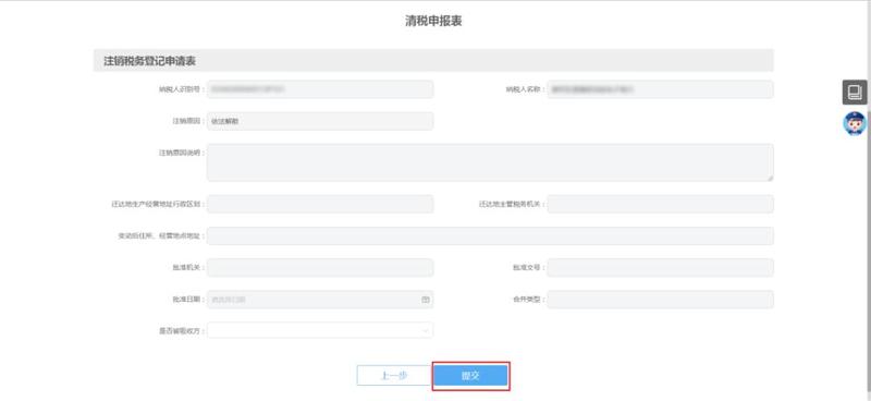 对于符合即办资格,且不存在未办结事项的纳税人,可直接点击【清税/注销】,进入清税申报表,确认后点击【提交】。