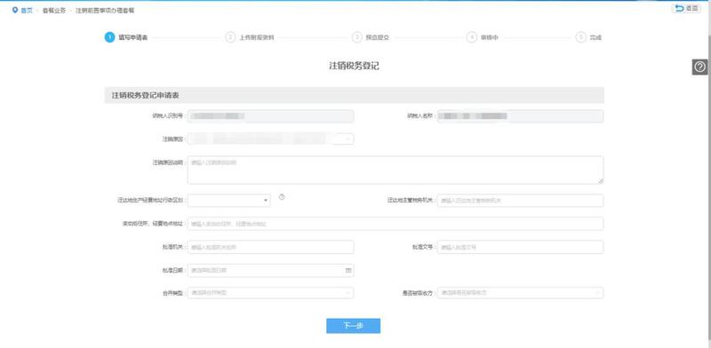第二步:填写注销申请信息