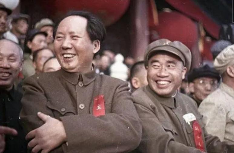 1949年开国大典,毛泽东和朱德开心的笑容