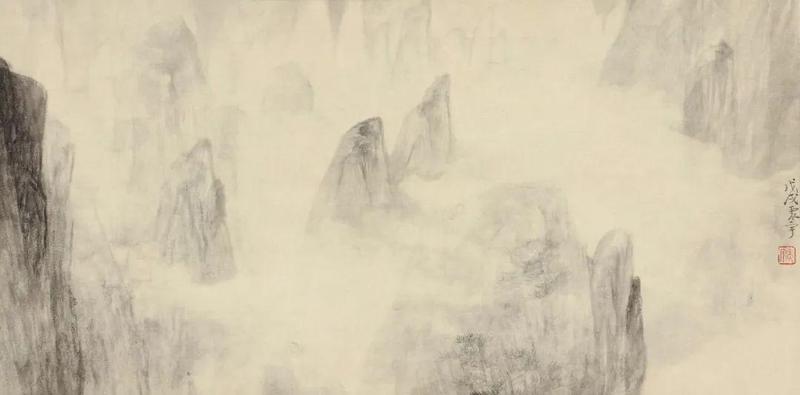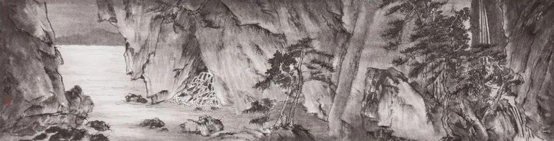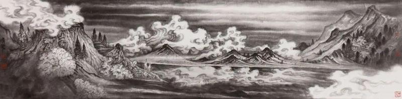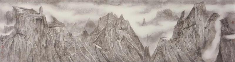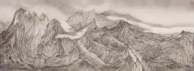 曾海波一直强调山水的“气”,意指中正之气,在山水画中需要看到律动感、节奏感、或是矛盾冲突的气;另一方面,“气韵生动”也是他不断追求的境界,用笔为气,用墨为韵。