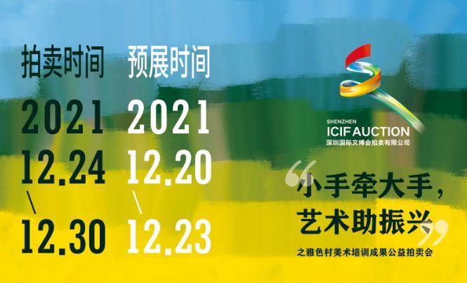 深圳国际文博会拍卖有限公司于2021年12月24日至30日于文博会拍卖小程序举办文博会公益拍卖。本场拍卖会将拍卖包含爱心艺术家无偿捐献的精品力作52件书画艺术品,由东方国石文化产业(深圳)有限公司筹集的名家名石精品12件作品,深圳国际文化产业博览交易会公司2021年度“小手牵大手,艺术助振兴”之雅色村美术培训成果师生作品47组,共计111件拍品。