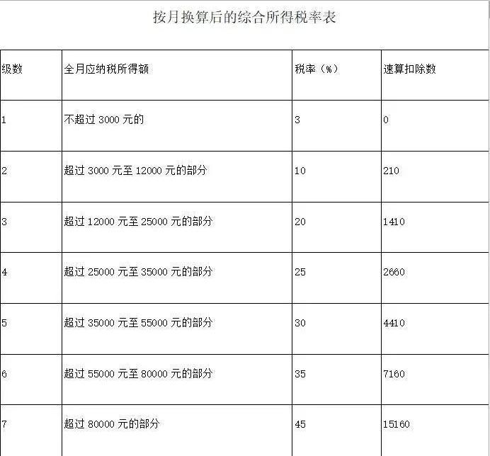图2: 按月换算后的综合所得税税率表 国家税务总局图