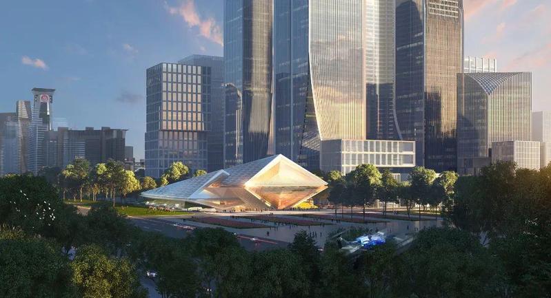 由改革馆的“ 山、水、城”、演艺中心的“金色贝壳”、金融中心的“金石叠山”方案,组成“品”字型布局的一馆两中心的新城市客厅。