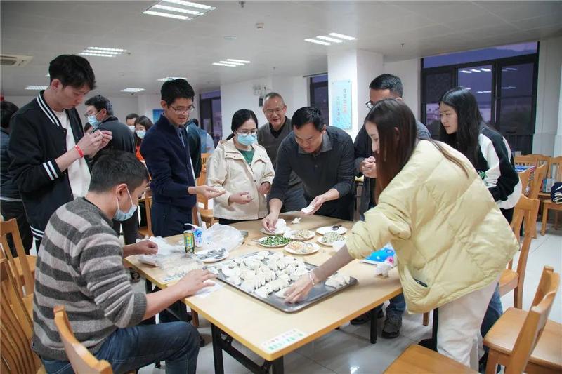 活动当晚,大家下班后纷纷来到三楼食堂,自行组队、洗手做好准备。随着主持人一声令下,大家开始包饺子、滚汤圆,活动过程中,一片其乐融融的欢乐景象。
