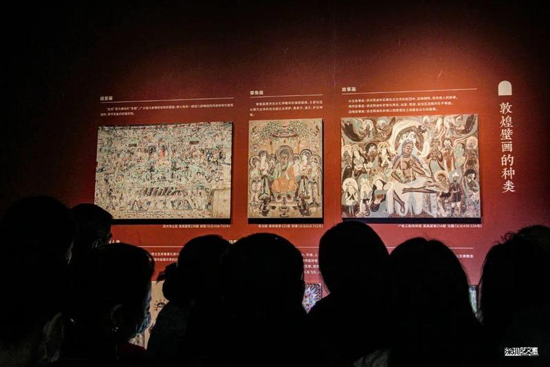 本次展览的内容主要分为两大类:一类是敦煌研究院藏临摹复制的大型洞窟以及彩塑、壁画、敦煌写经等,主要展示丝路上的敦煌发展史、石窟的营建与壁画雕塑艺术;