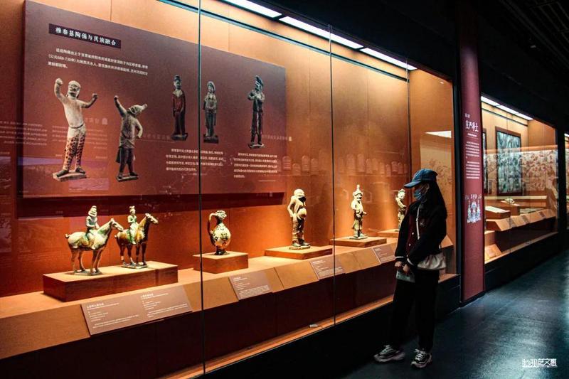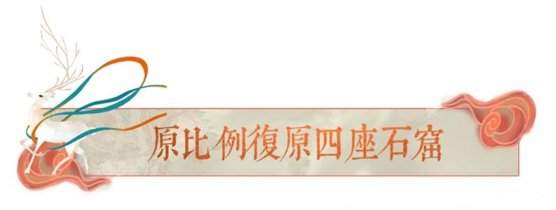 在博物馆大厅正中央有四座原比例复制的具有时代艺术高度的代表性洞窟,分别是第285窟(西魏)、220窟(初唐)、320窟与45窟(盛唐),单体尺寸高6、长10、宽8米,通过原样复制彩塑、临摹壁画等形式,展示敦煌的石窟艺术,让观众能“身临其境”地感受中华文明的创造力和时代审美。