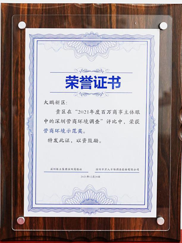 荣获“示范奖”!大鹏新区一流营商环境吸引优质企业用“脚”投票