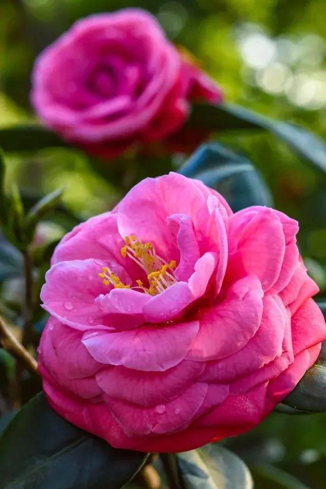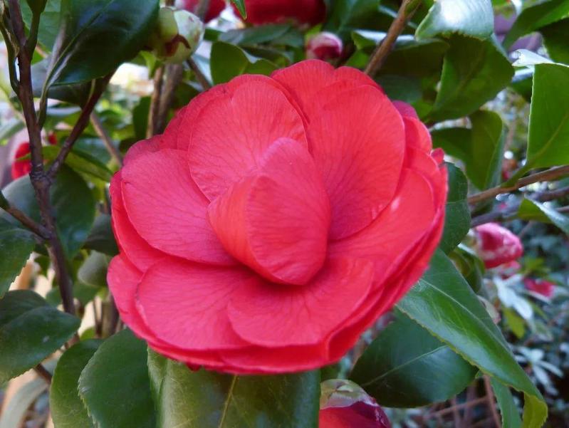 常绿阔叶灌木、小乔木或乔木,品种极多,花单瓣或重瓣,色彩鲜艳,有白色、粉色、红色、紫色、黄色等,花期从11月份到翌年4月份。山茶花是我国传统观赏花卉,“十大名花”中排行第七,亦是世界名贵花木之一。