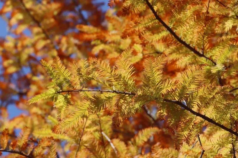 树冠圆锥形,冬季由绿色渐渐变为褐红色,富明显的季相变化。喜光、喜温暖多湿气候,不耐干旱,尤耐水湿。