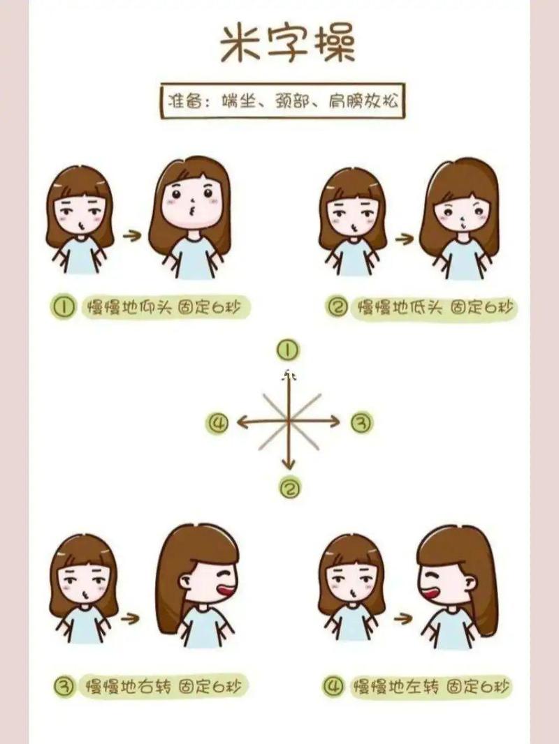 端坐在凳子上,颈部、肩膀放松,慢慢的仰头、固定6s,再回到正常位置,再慢慢的低头、固定6s,再回到正常位置,慢慢的右转、固定6s,再回到正常位置,慢慢的左转、固定6s。