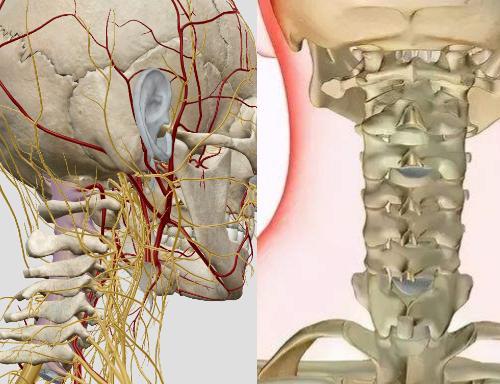 首先看一下我们颈椎的结构,颈椎有7块椎体,有很多的肌肉附着在上面,中间穿行着非常多的神经、血管,是连接大脑的枢纽,其中任何一个小零件有问题了都会让我们的颈椎感觉不适。