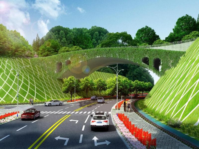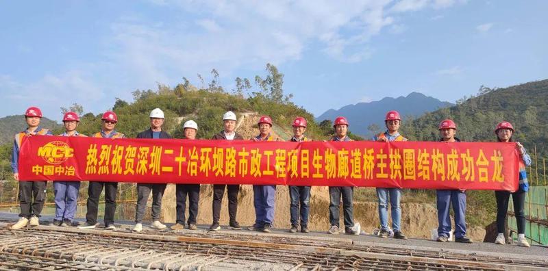 该桥是一座主拱直线跨距47米的现浇混凝土桥梁,连通排牙山、江屋山,建成后将为周边野生动物提供一条安全的通道。