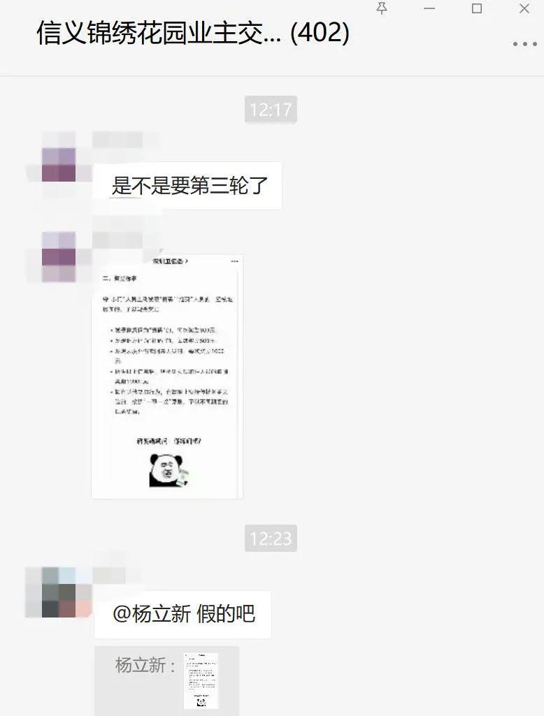 显然,他也是在其他地方看到了这张截图,信以为真的同时,转到了小区群里。