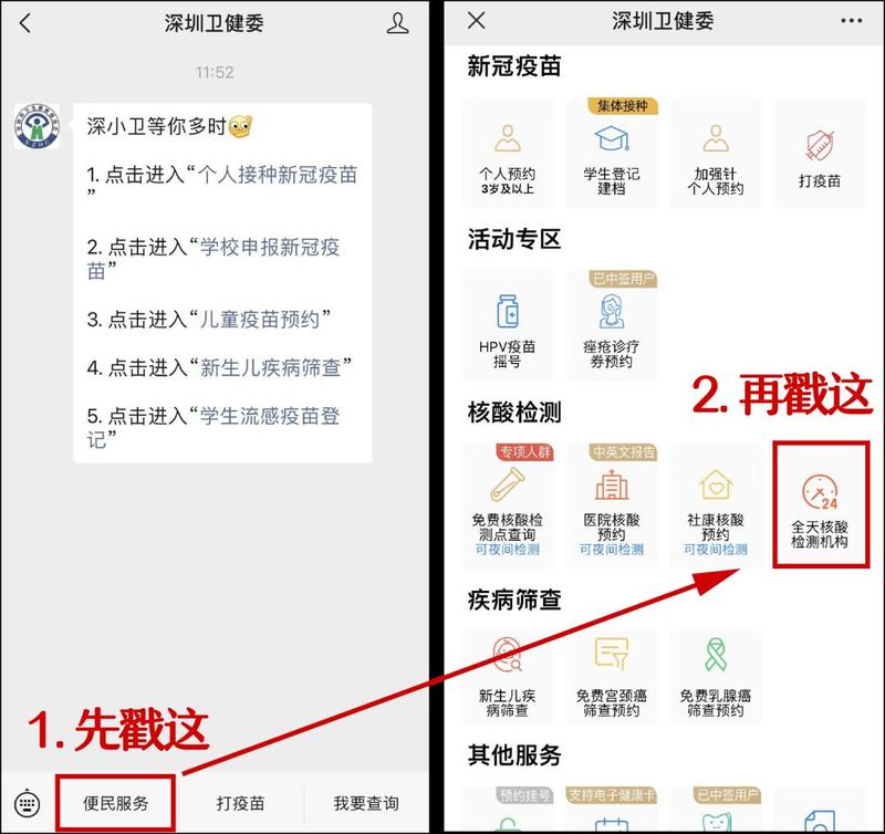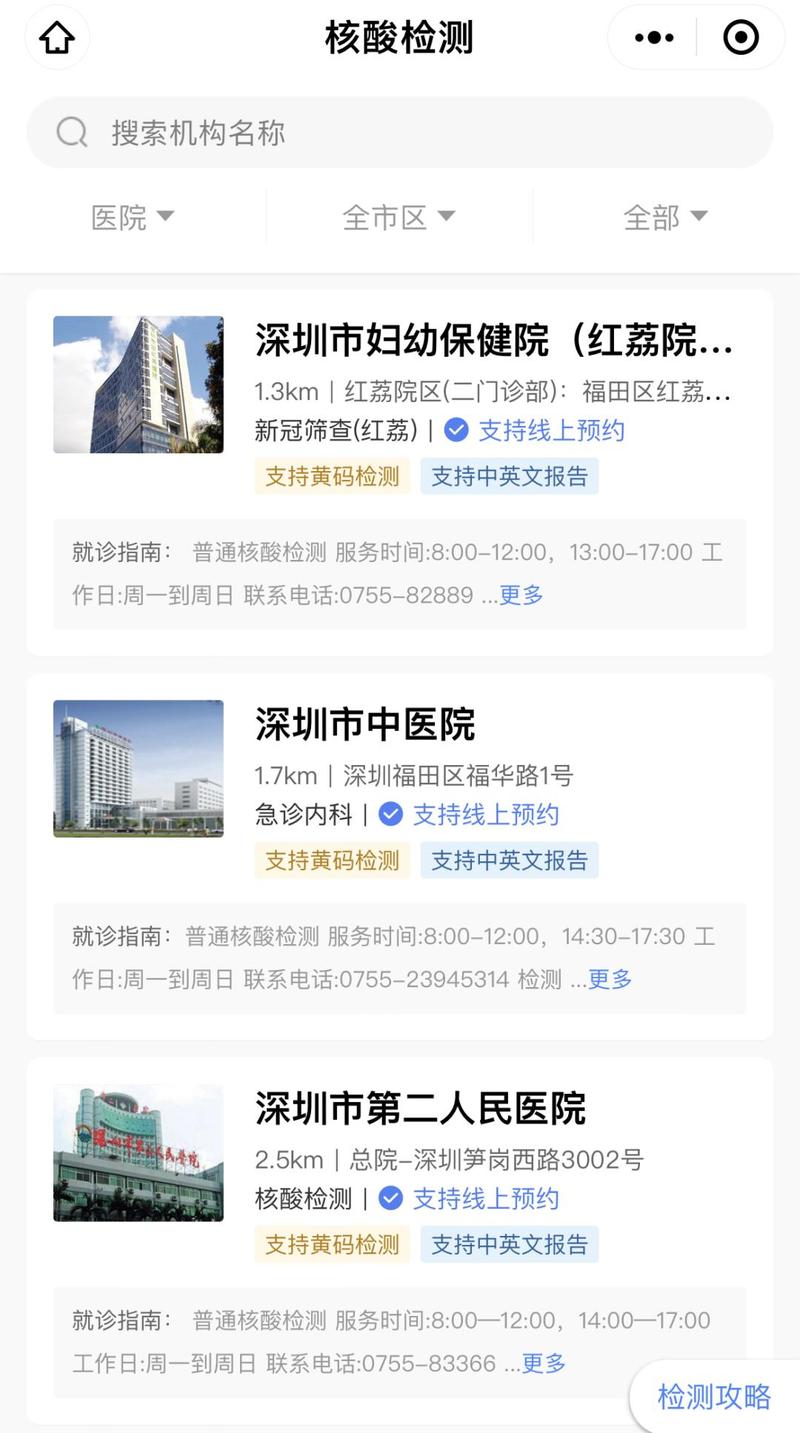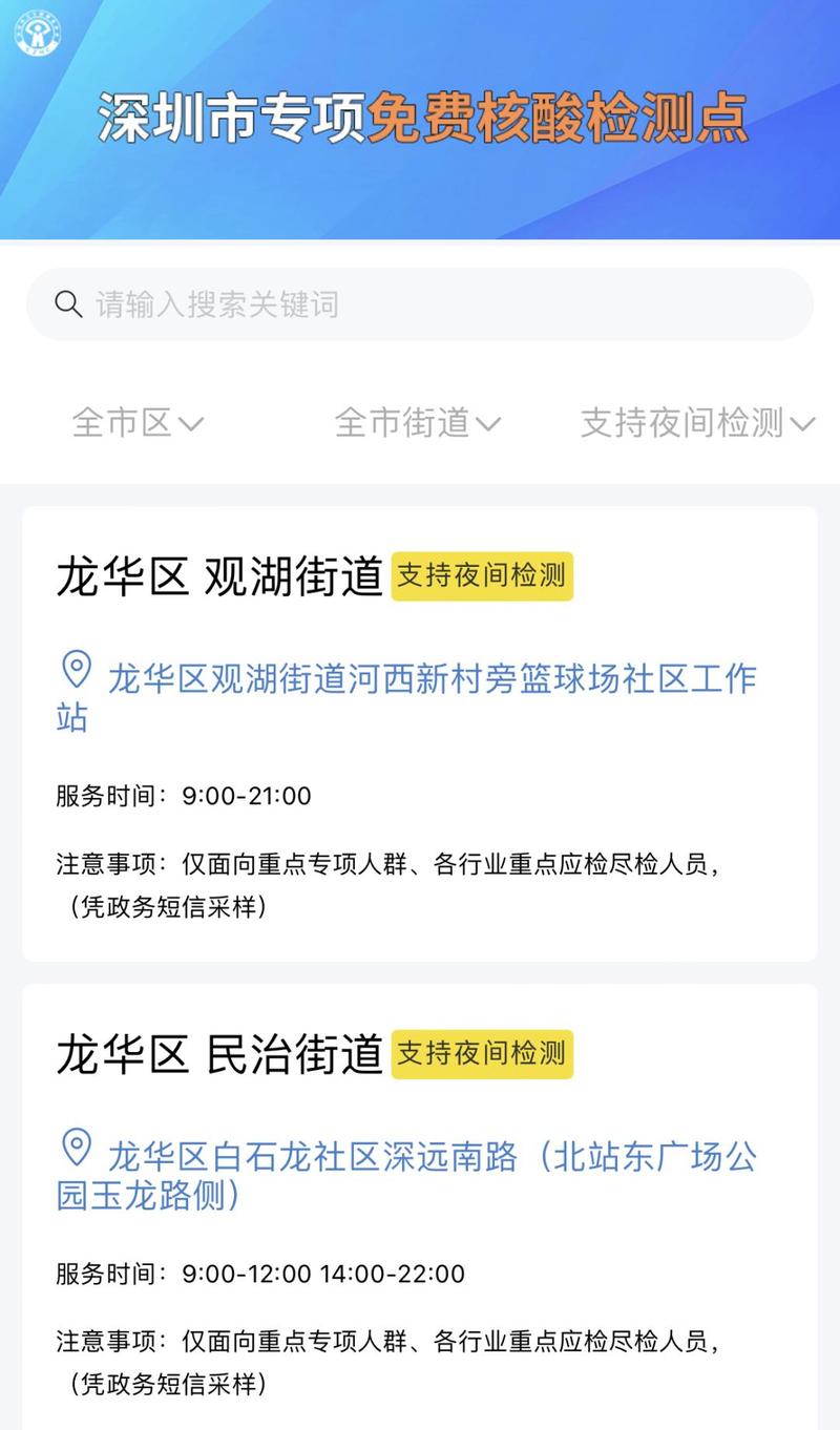 专项人群核酸采样点同样可以通过“深圳卫健委”微信公众号查询——