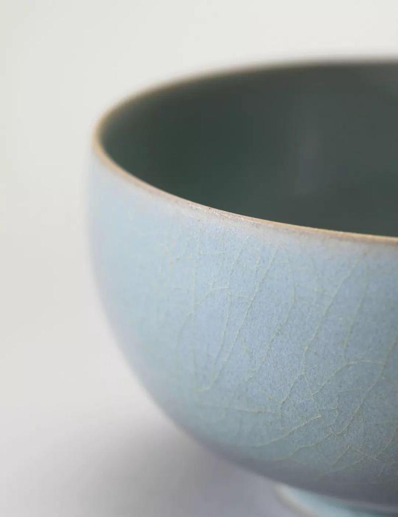 这种釉料的特别之处在于它含有玛瑙。汝窑瓷与龙泉青瓷相似,含有氧化铁,使其产生玉一般的色泽。釉料与胎体冷却速度不同所造成的裂纹,更为汝窑瓷添上了一抹残缺之美。