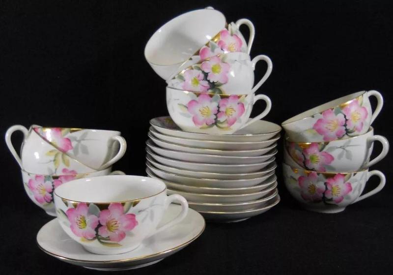 则武瓷器最受欢迎的杜鹃花系列产于1915年至1930年间。正如名字所透露的那样,在这一系列的图案中,白色的背景映衬粉红色的花朵,在边缘和把手处有金色的细节设计。
