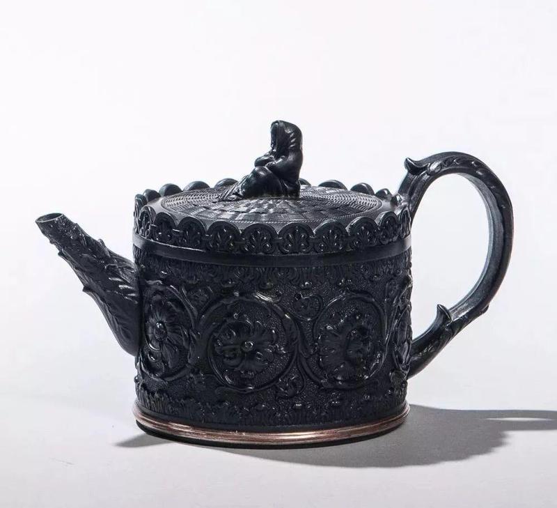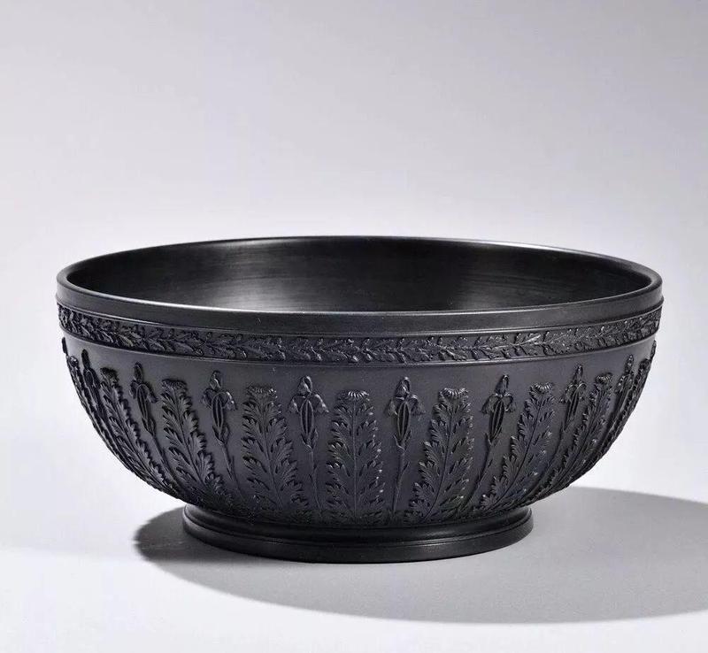 1768年,韦奇伍德开始了一系列称为「黑陶」的设计,旨在模仿古代世界的图案。粘土中加入了锰,在烧制过程中变成黑色,这些器皿的表面就会呈现出深邃而哑光的黑色,「黑陶」由此得名。