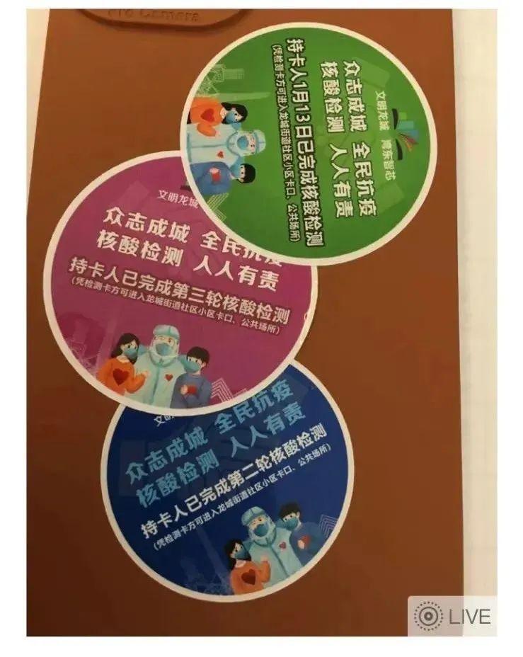 与最初小纸条版的简易证明相比,新的核酸检测凭证贴纸用不同的颜色区分不同检测次数。这些贴纸颜色鲜艳丰富,使防控工作进展过程一目了然,很大程度上减轻了社区疫情防控的压力。