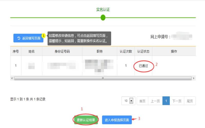 7、完成实名认证后,点击系统页面【更新认证结果】,全部认证状态“已通过”后,点击【进入申报选择页面】。