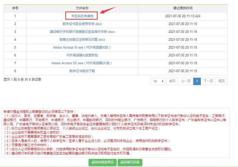 9、全流程网上办理,请下载【未签名的申请表】进行电子签名、提交申请。如需修改申请信息,点击【返回填写页面】,再次提交需重新实名认证。